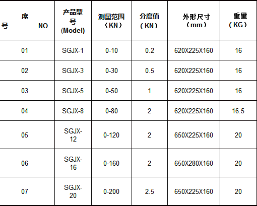 2.拉力表測量范圍為0--200KN 。